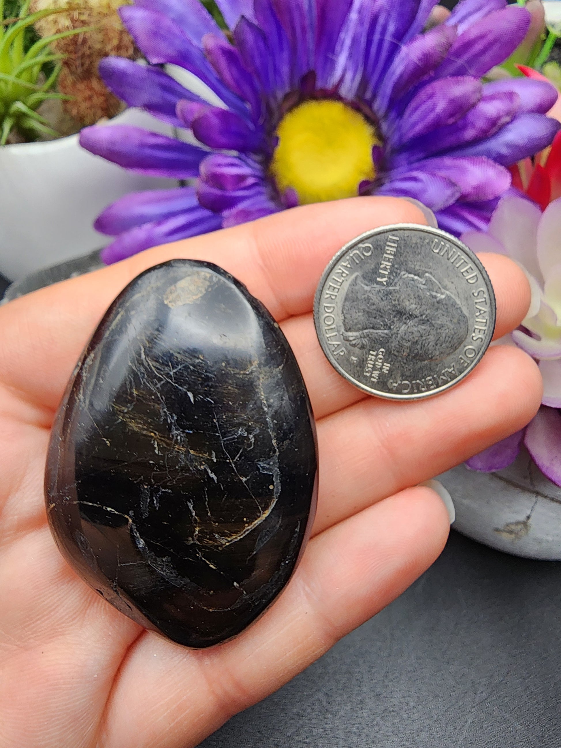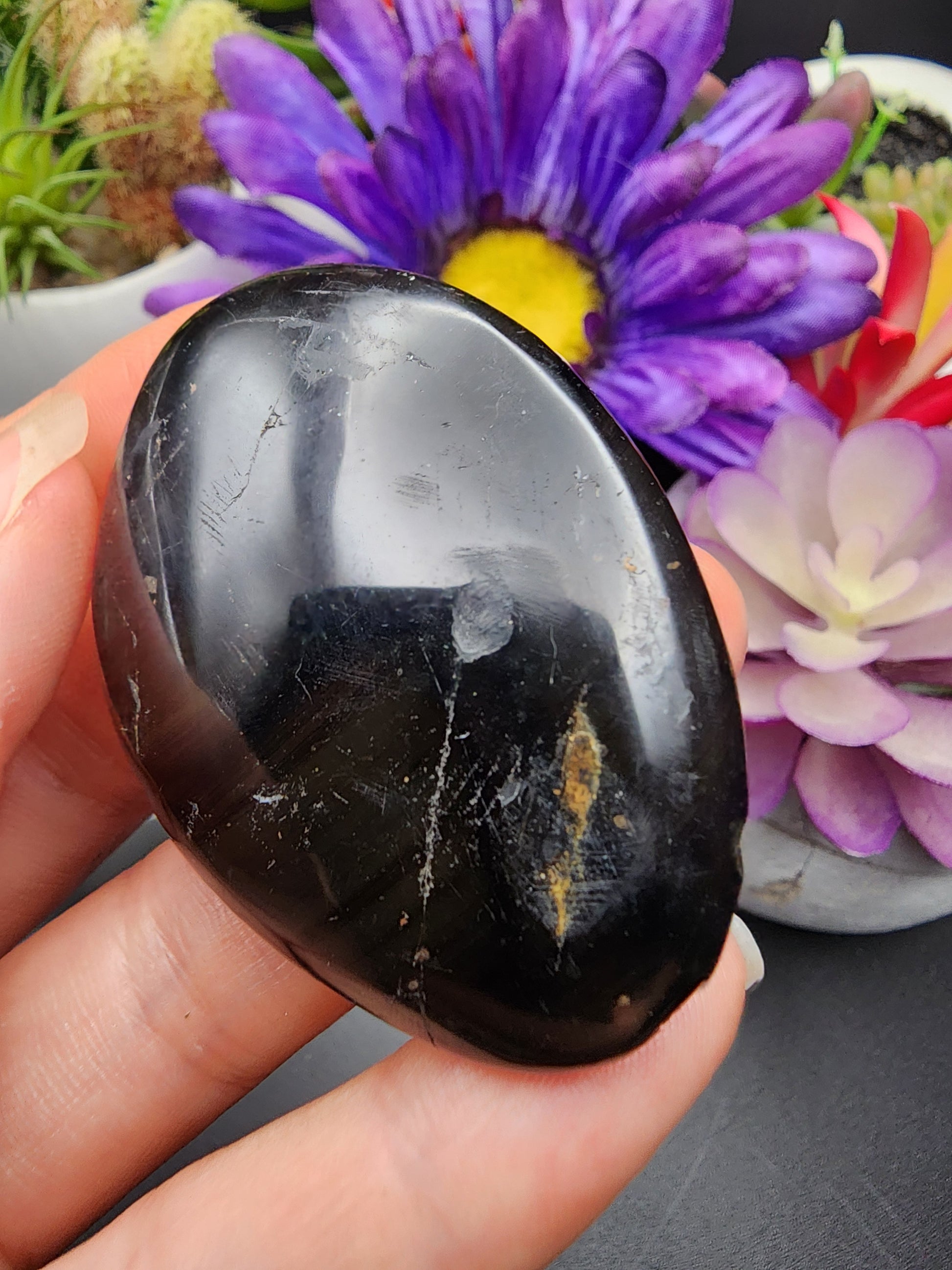 Polished Black Tourmaline Palmstone