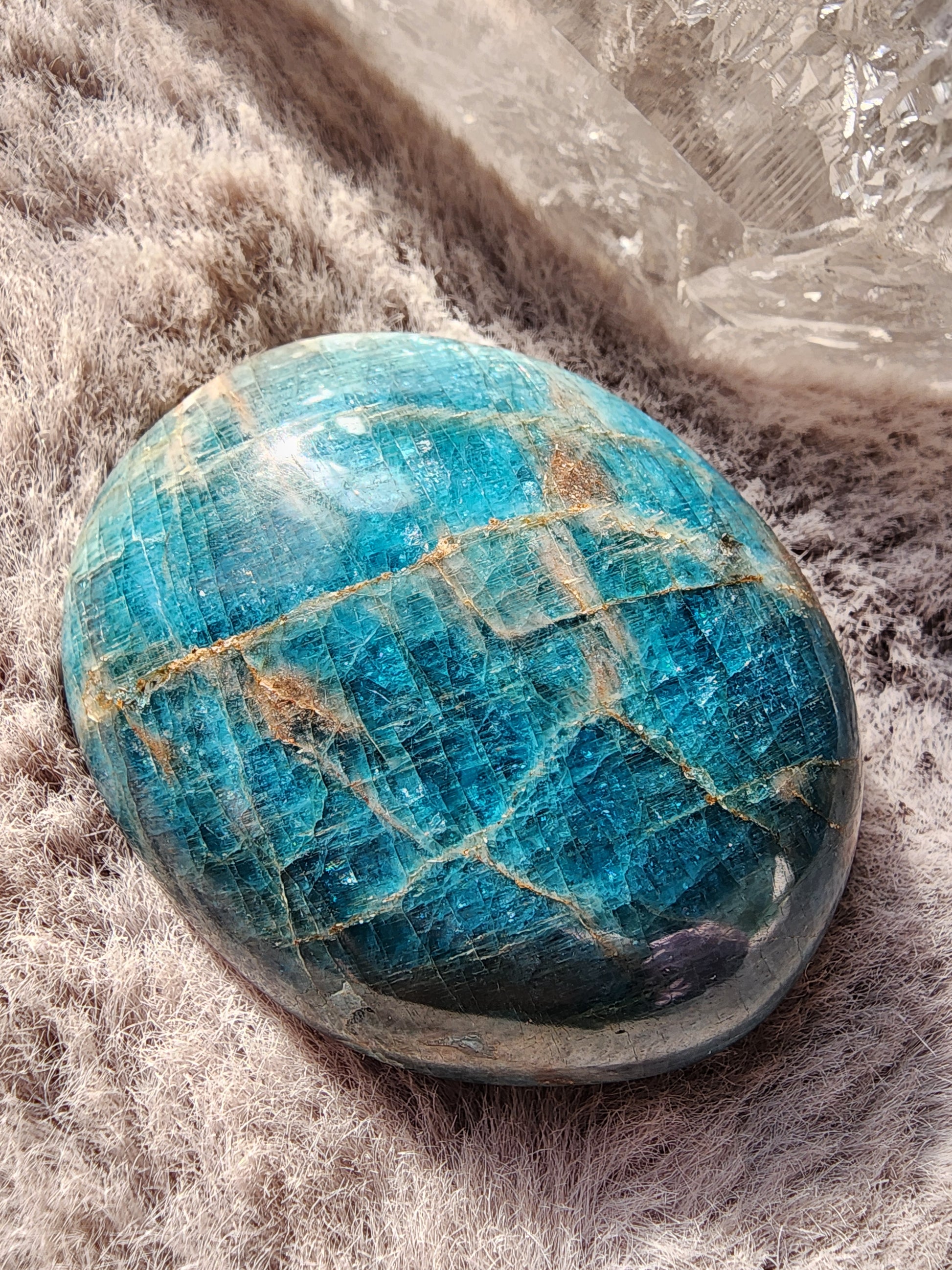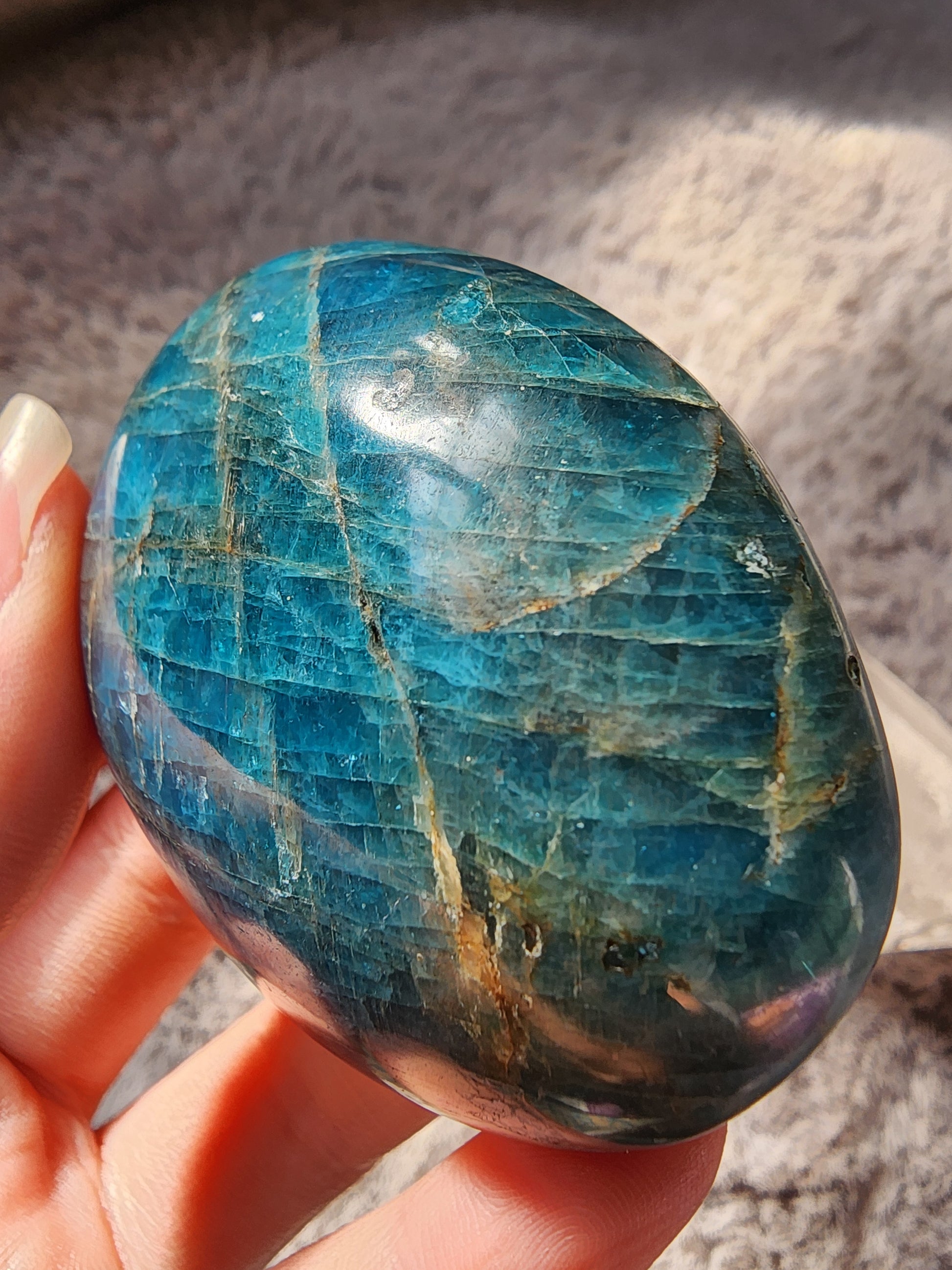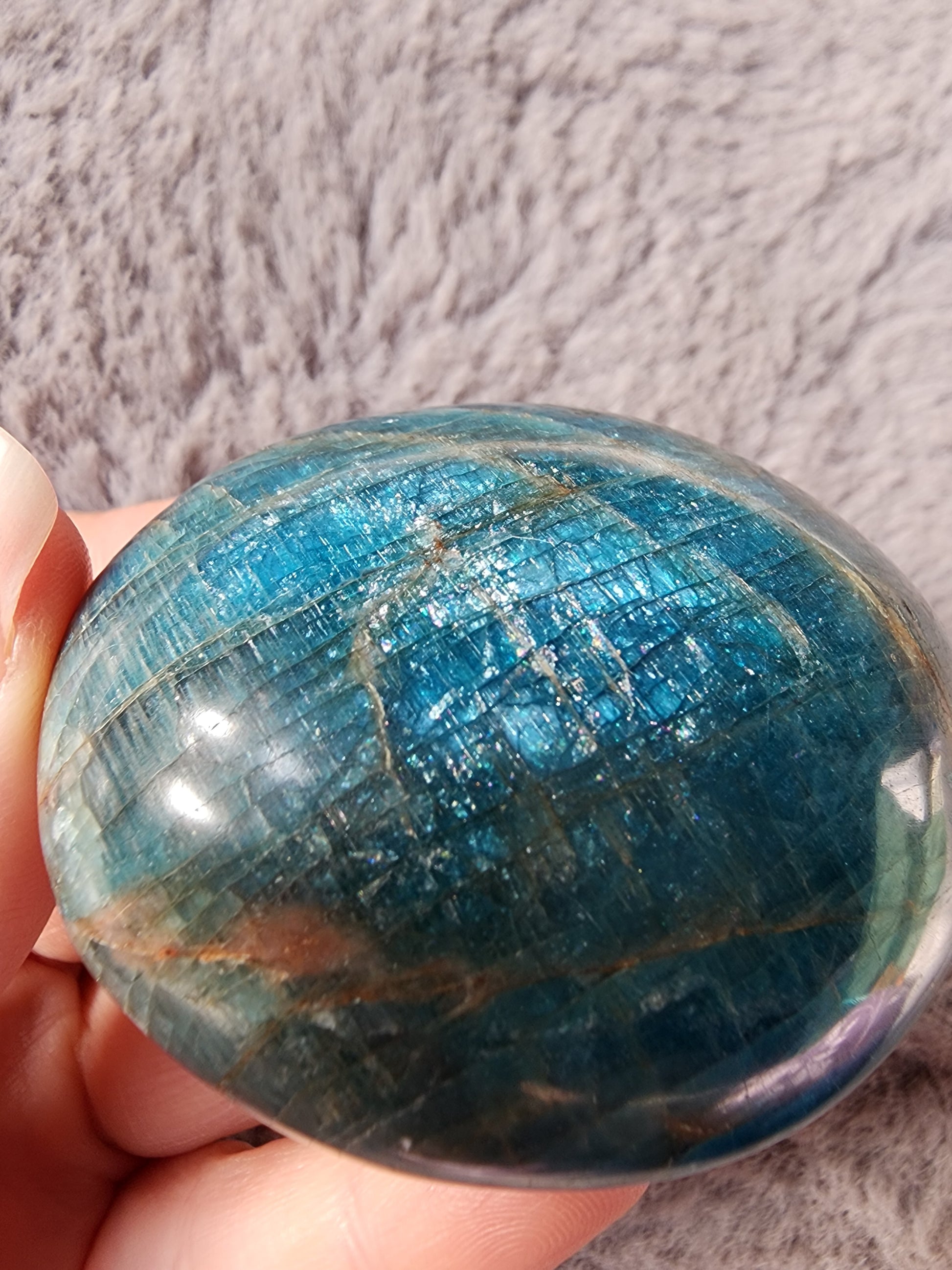 Beautiful Blue Apatite Palmstone from Madgascar!