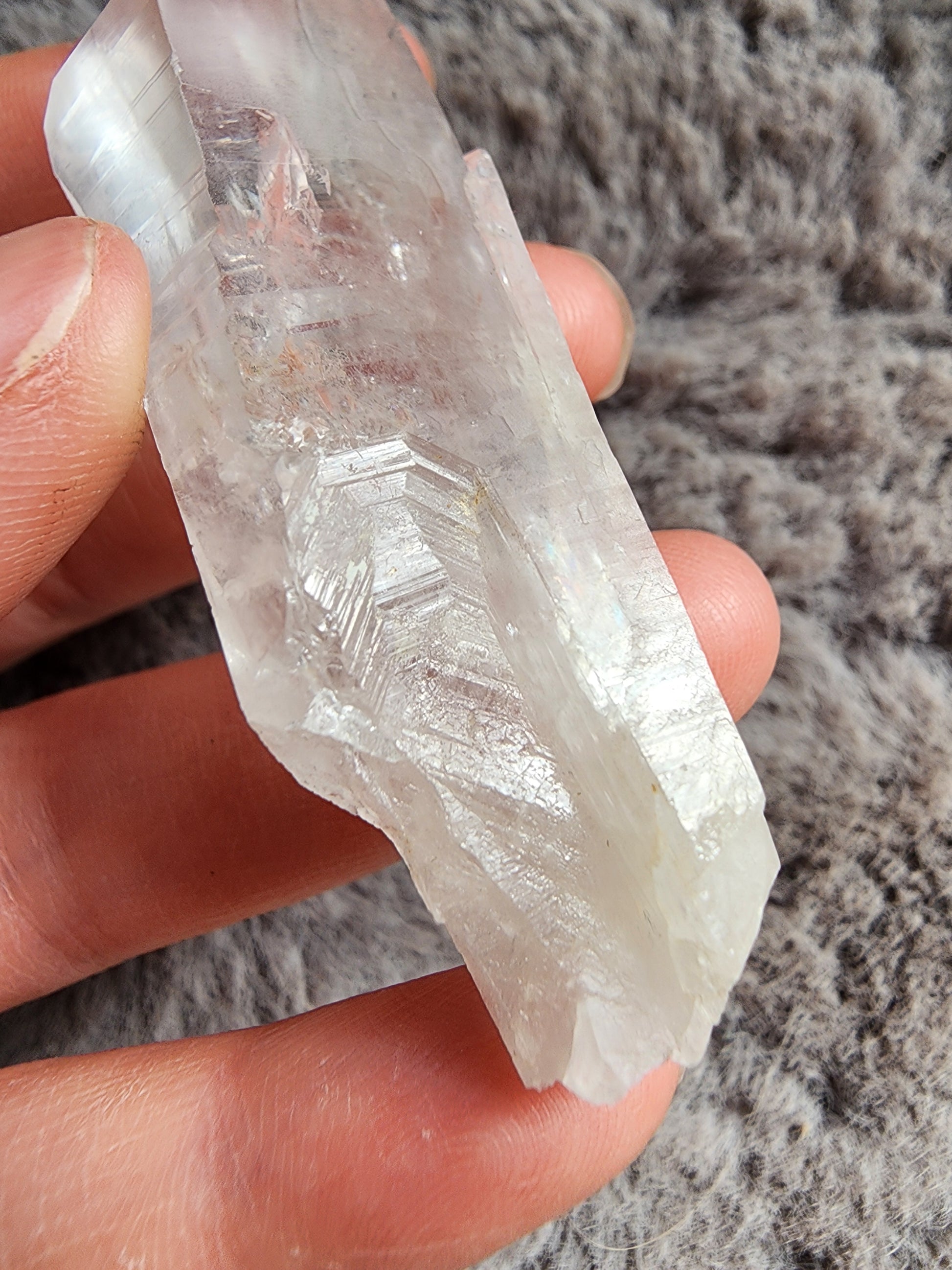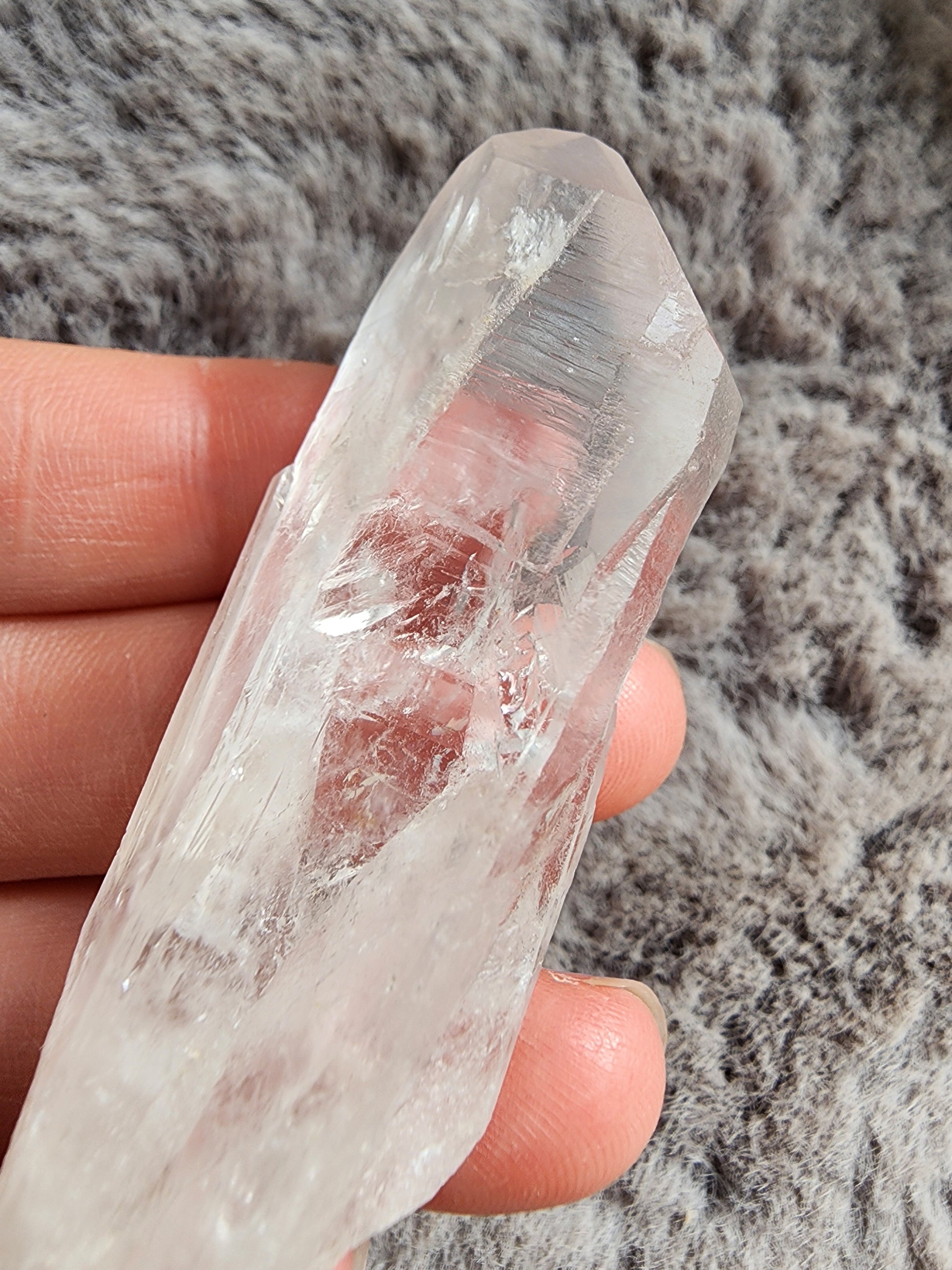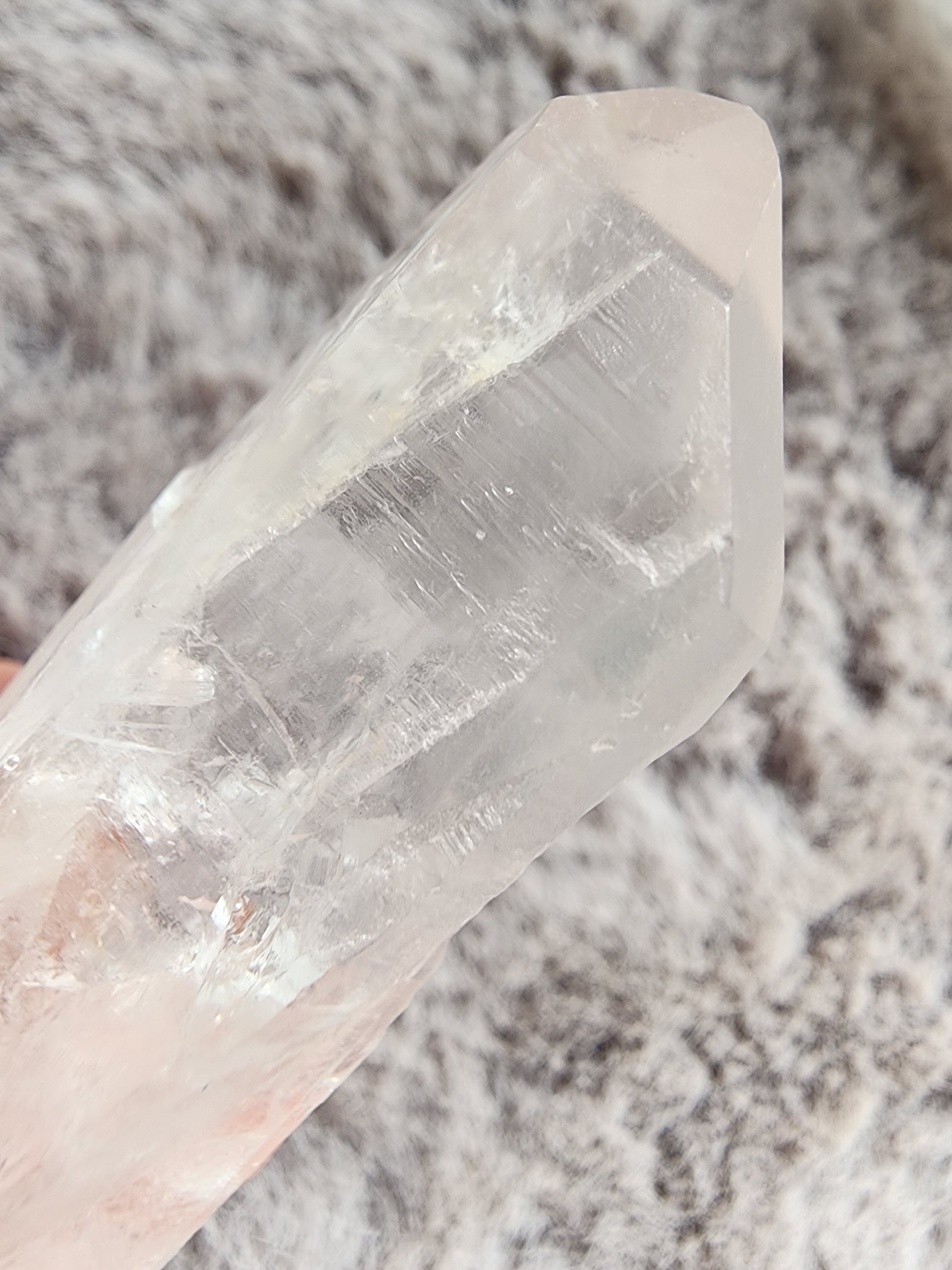 Clear Quartz Point from Brazil with Rainbow Inclusions & really cool imprint on the back