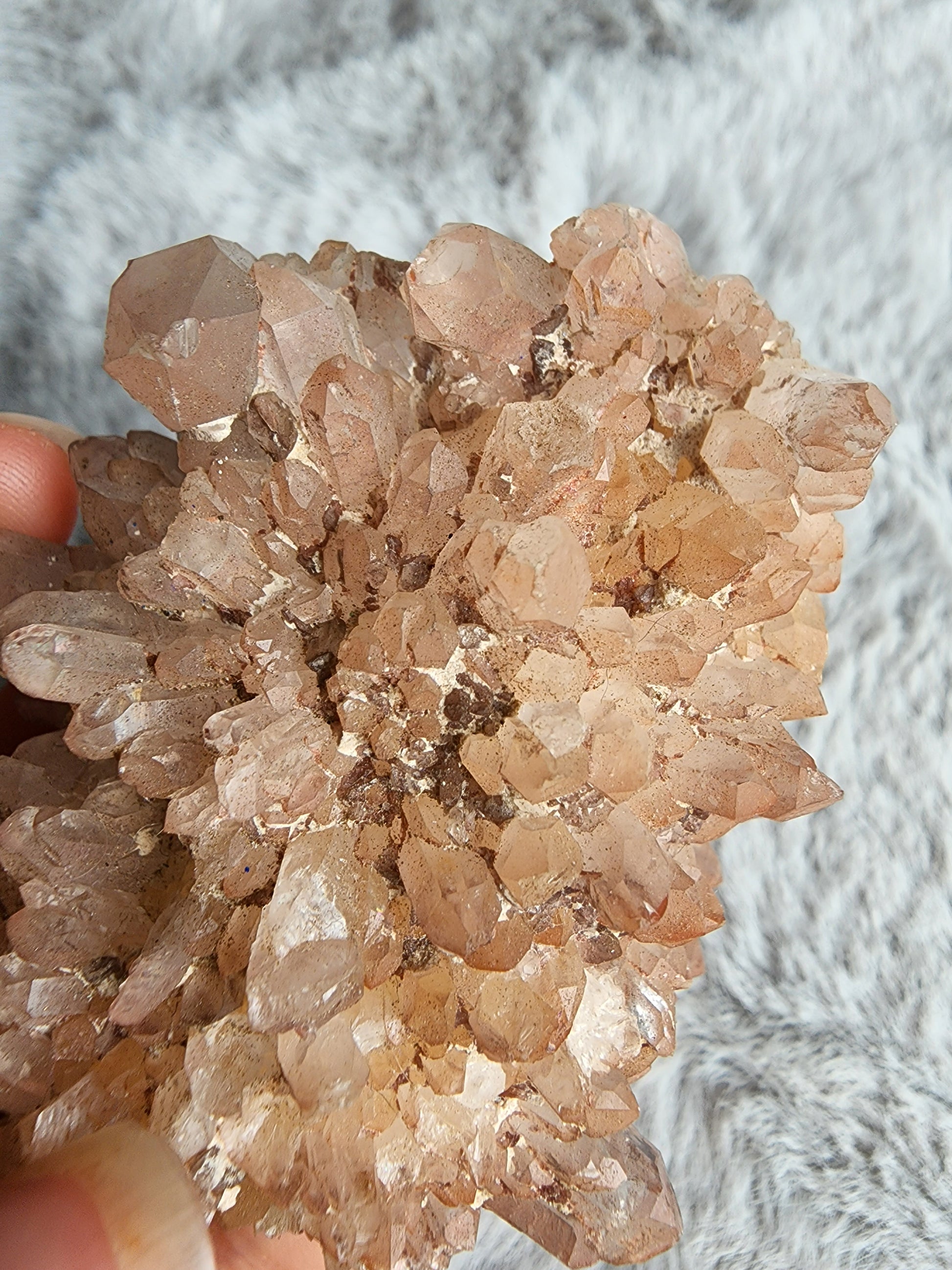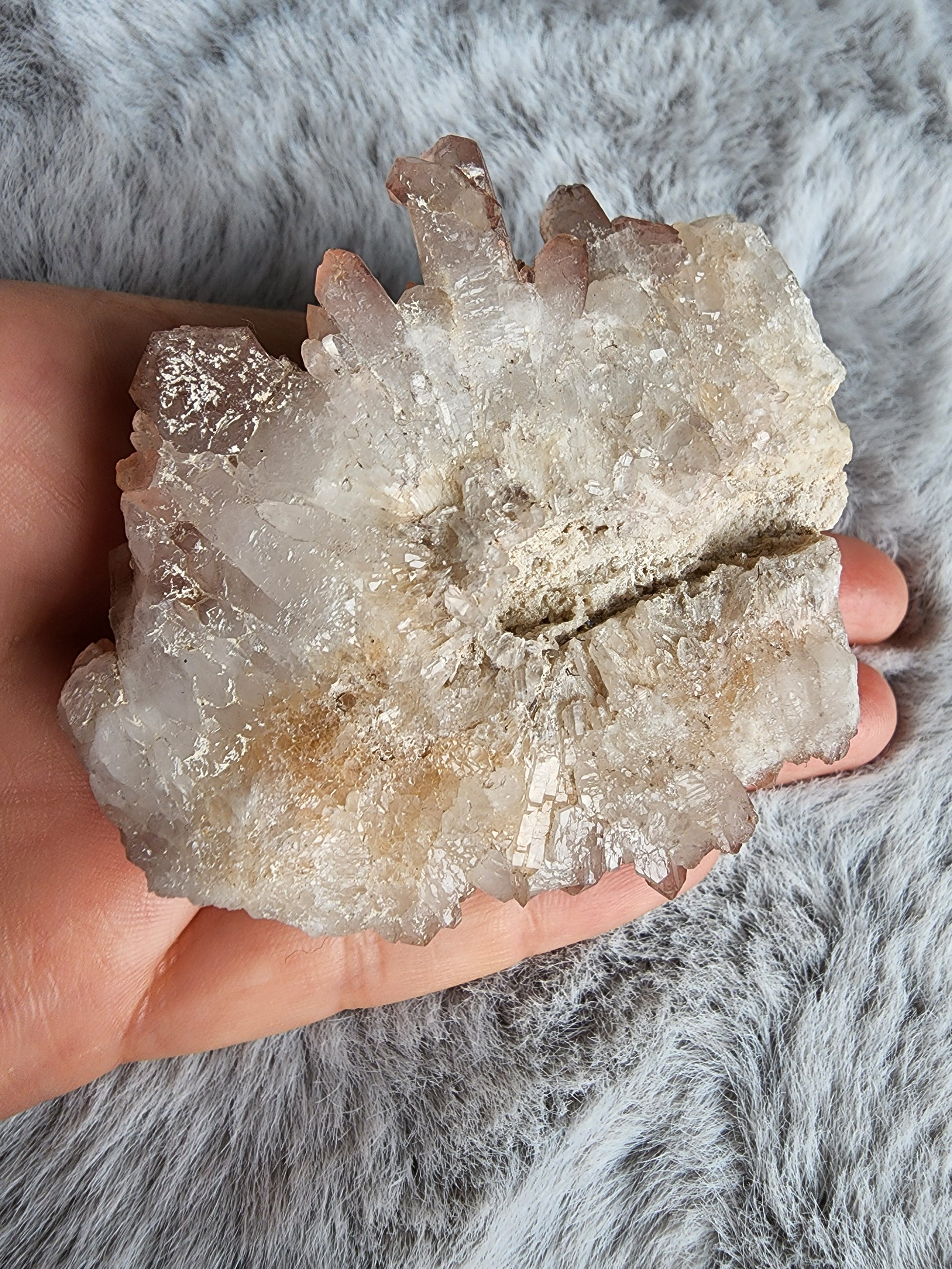 Pale Pink Red Hematite Stained Quartz Cluster from South Africa