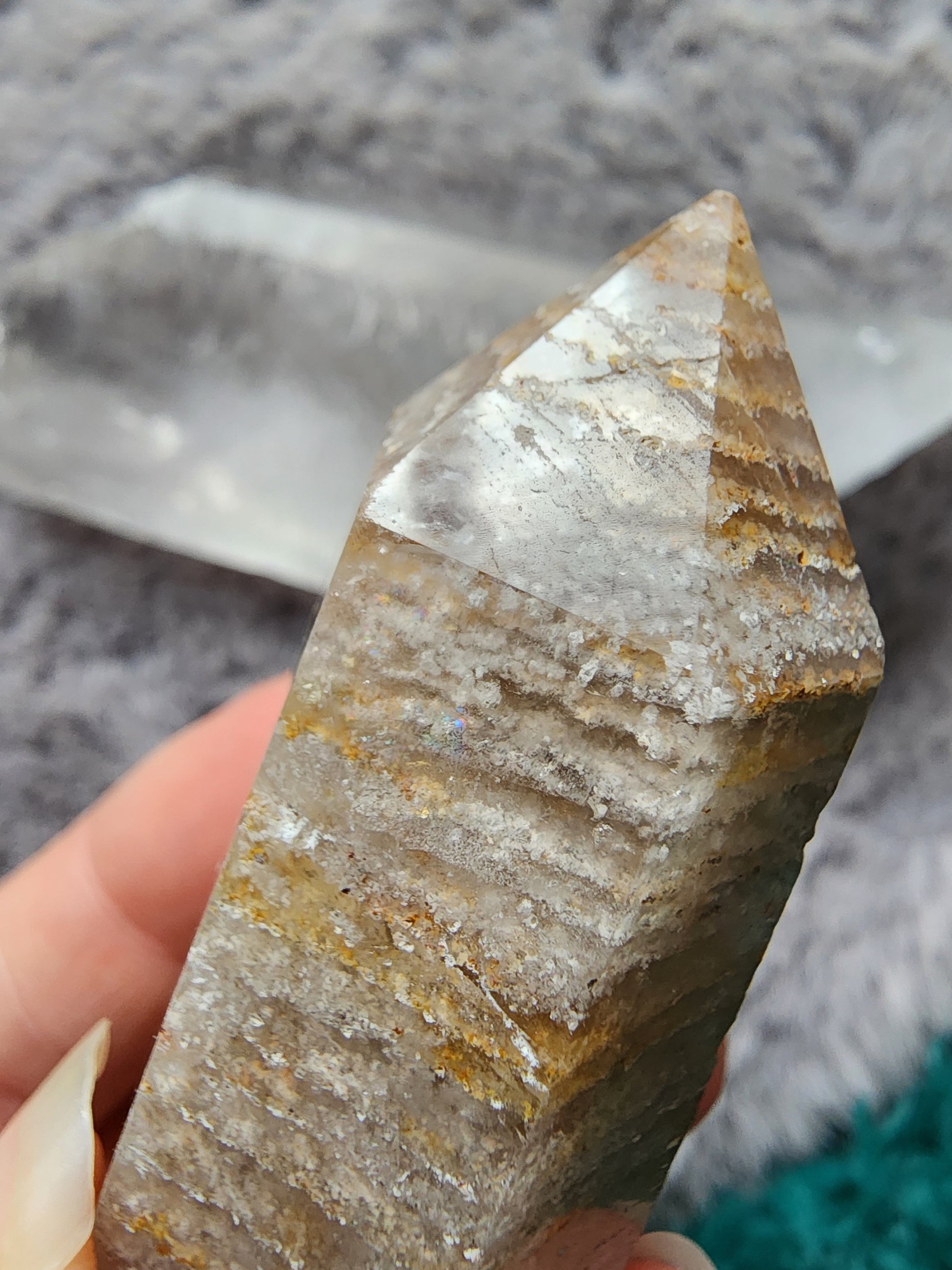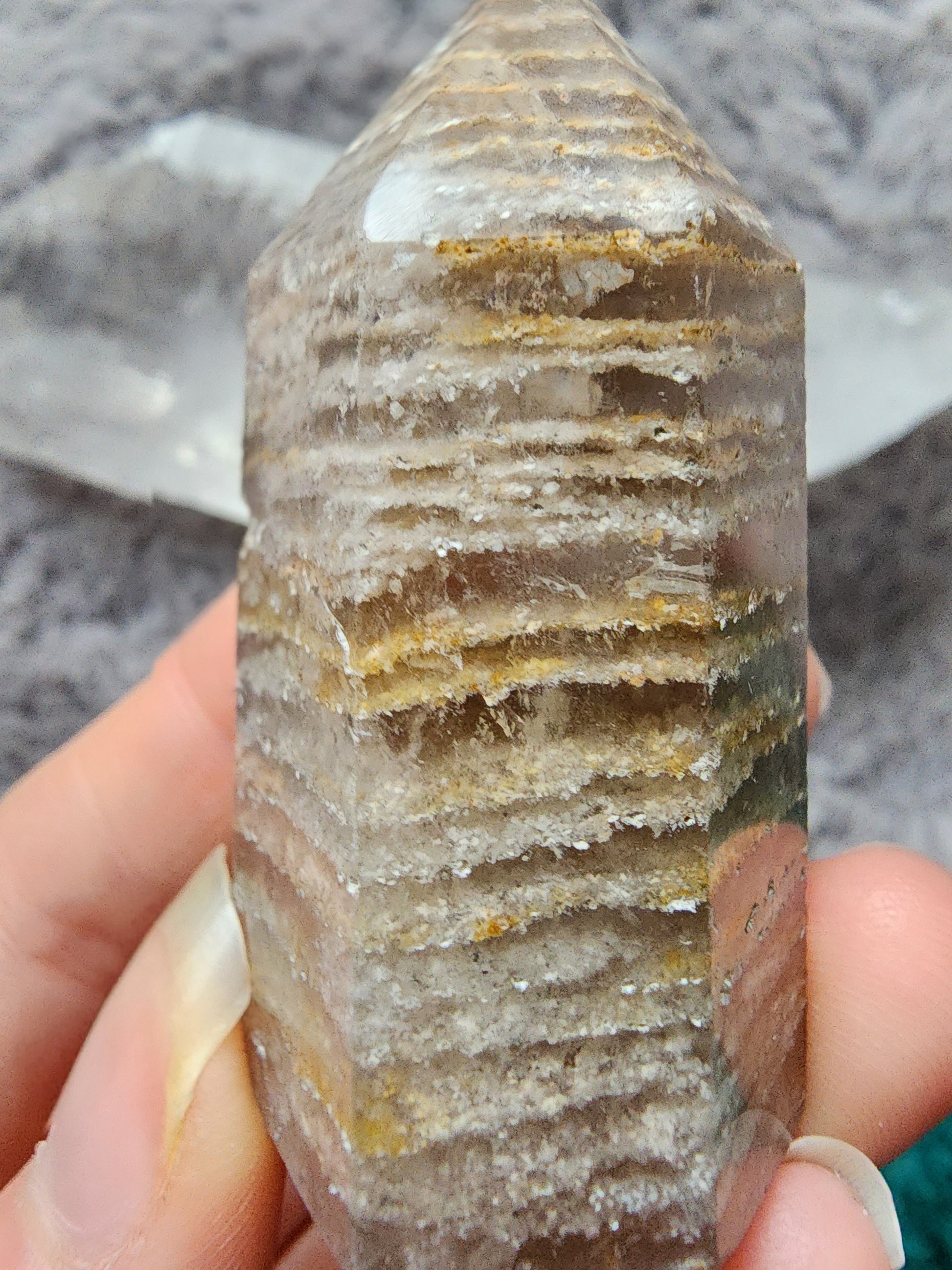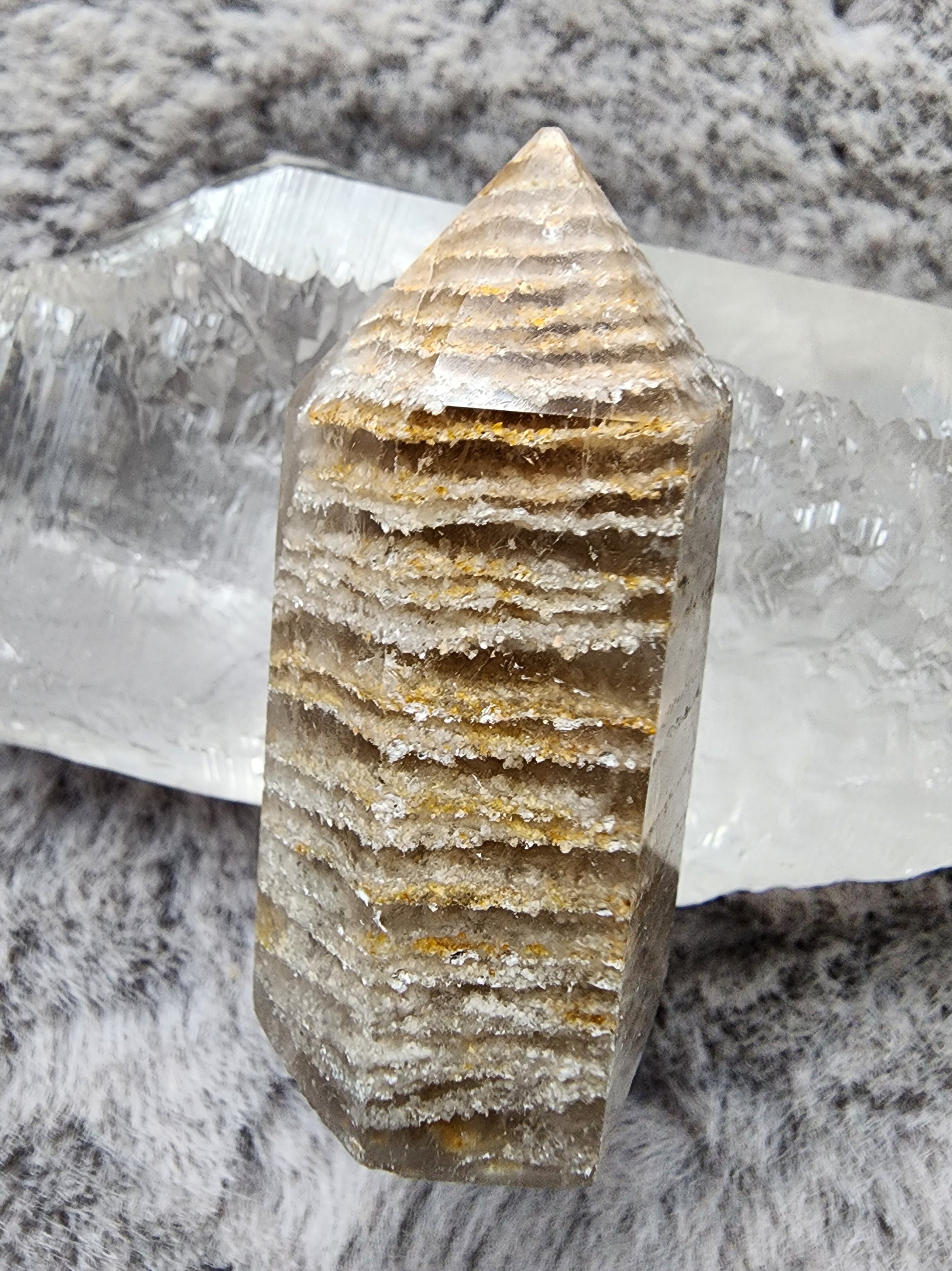 Cut and Polished Thousand Layers included Quartz Tower