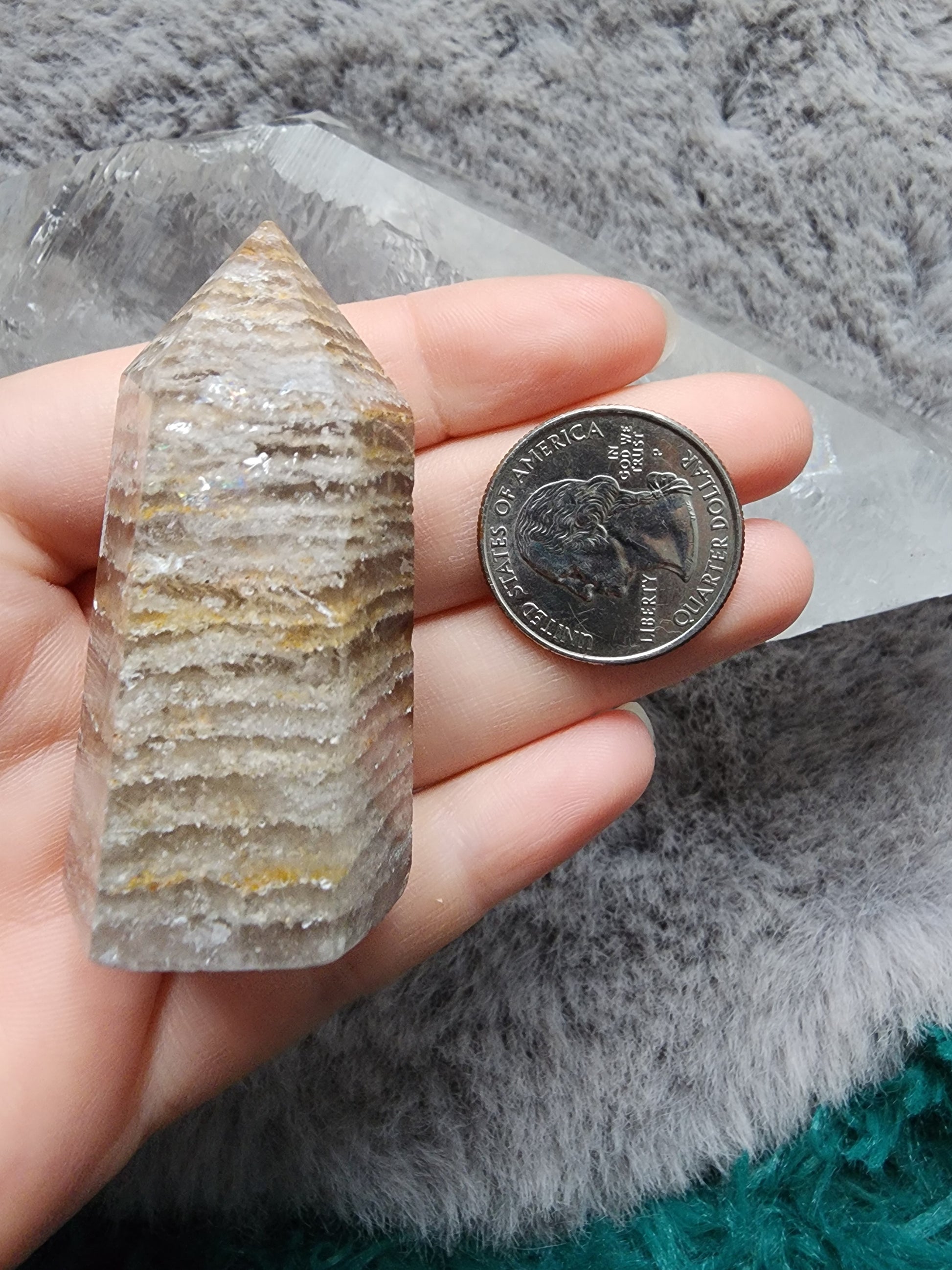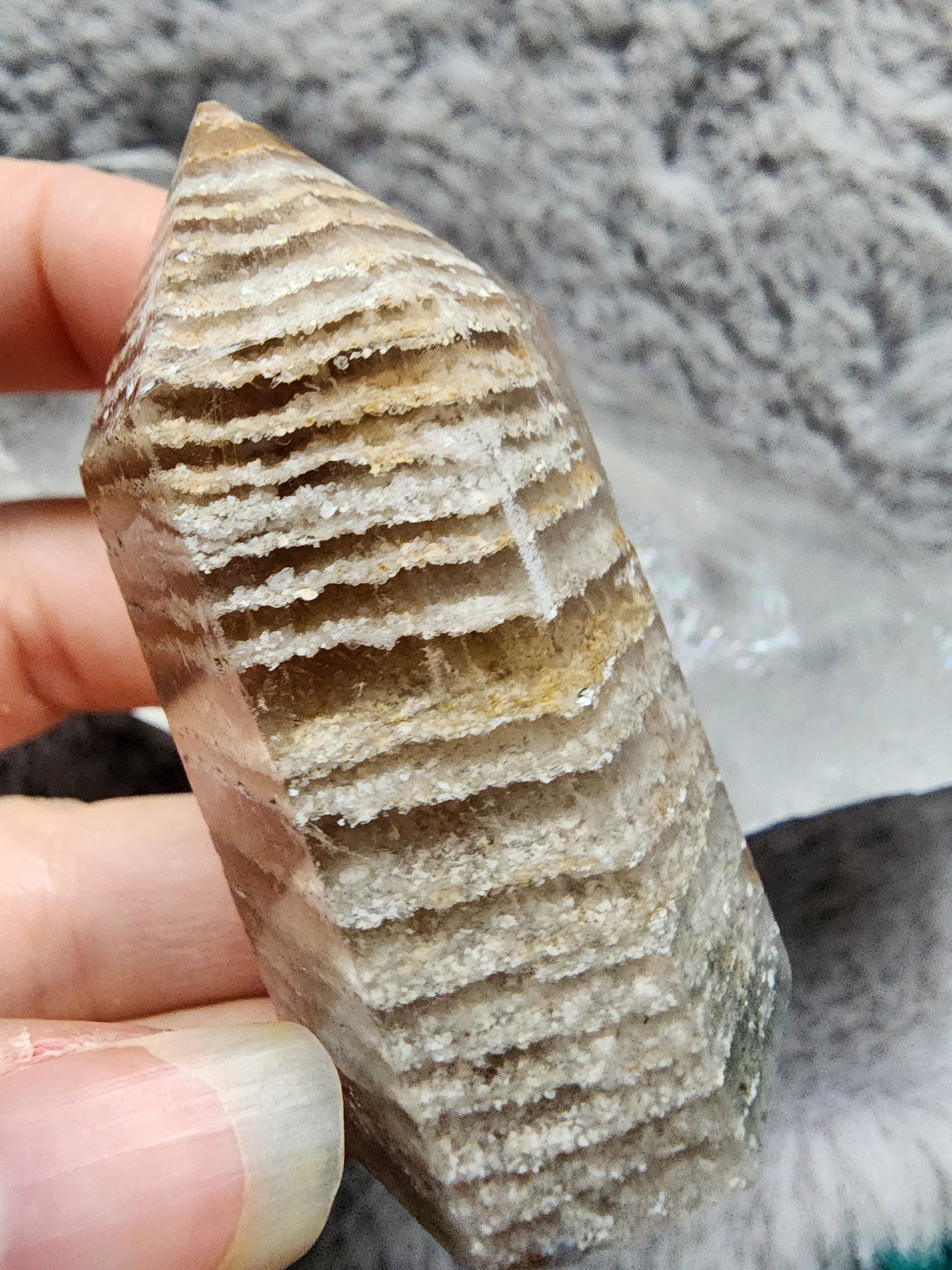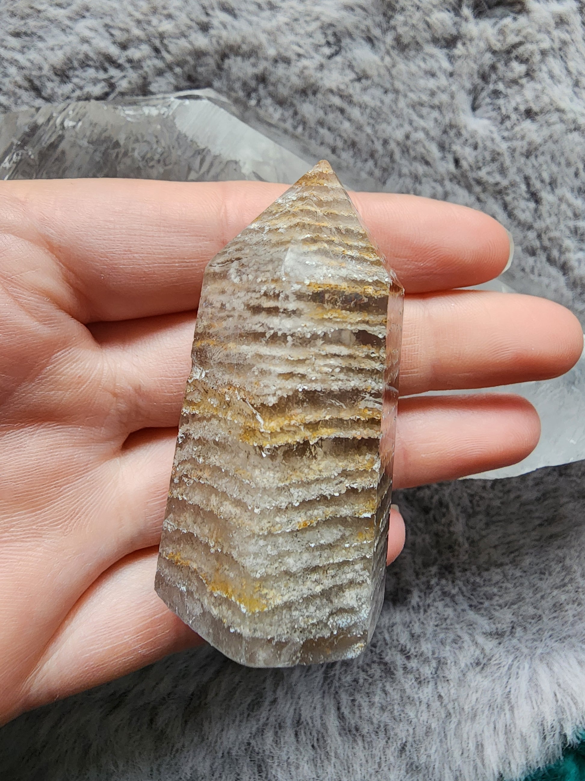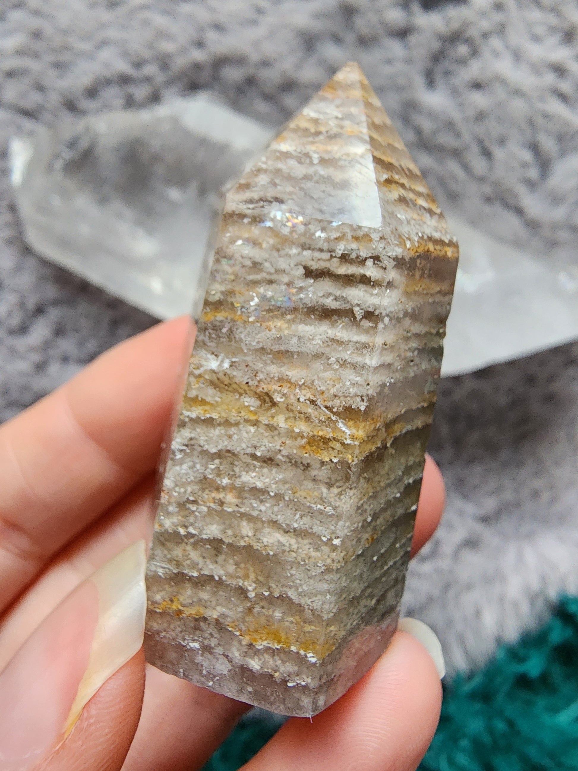 Cut and Polished Thousand Layers included Quartz Tower