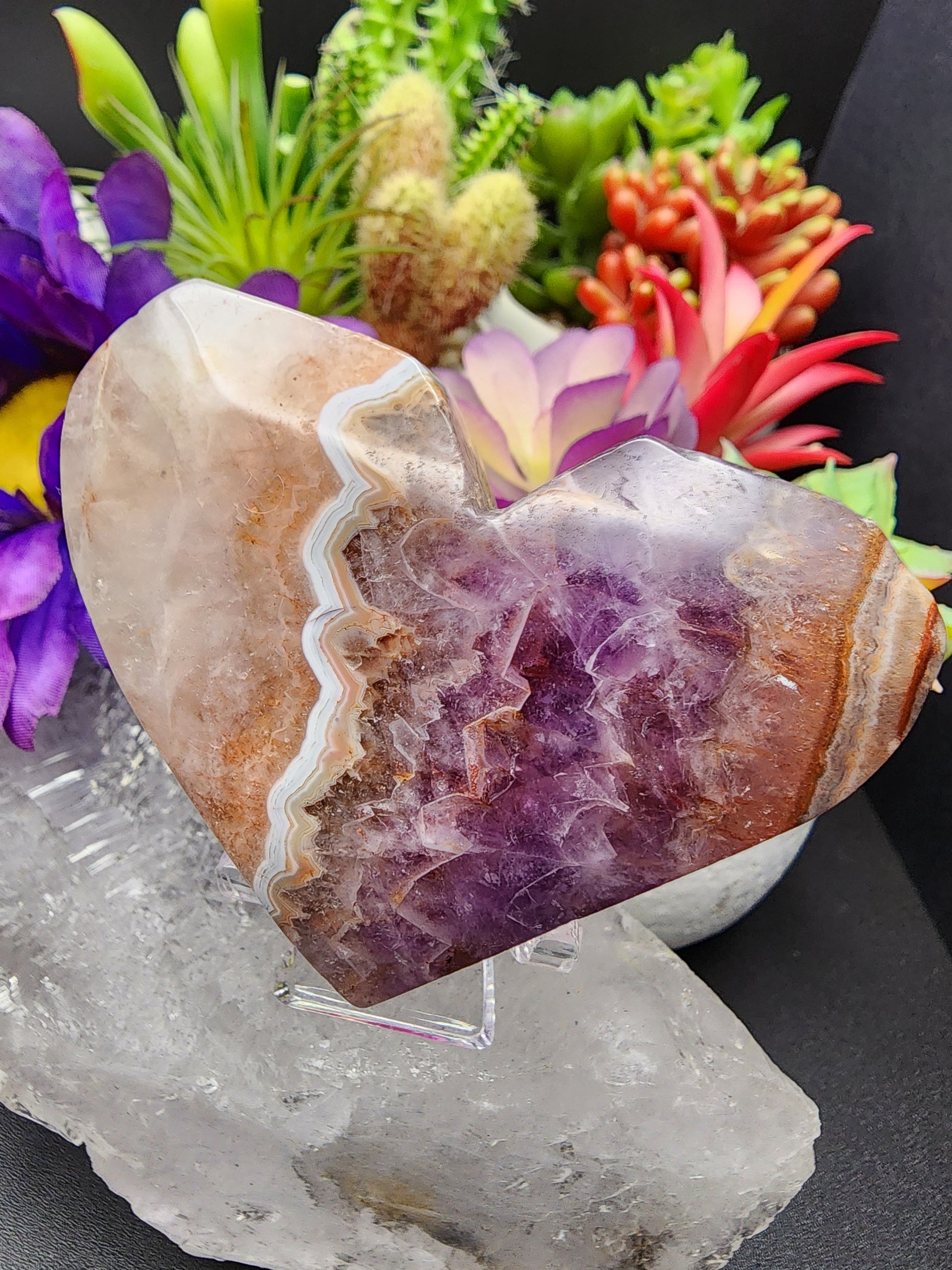 Beautiful Polished Banded Mexican Agate w/ Amethyst Heart