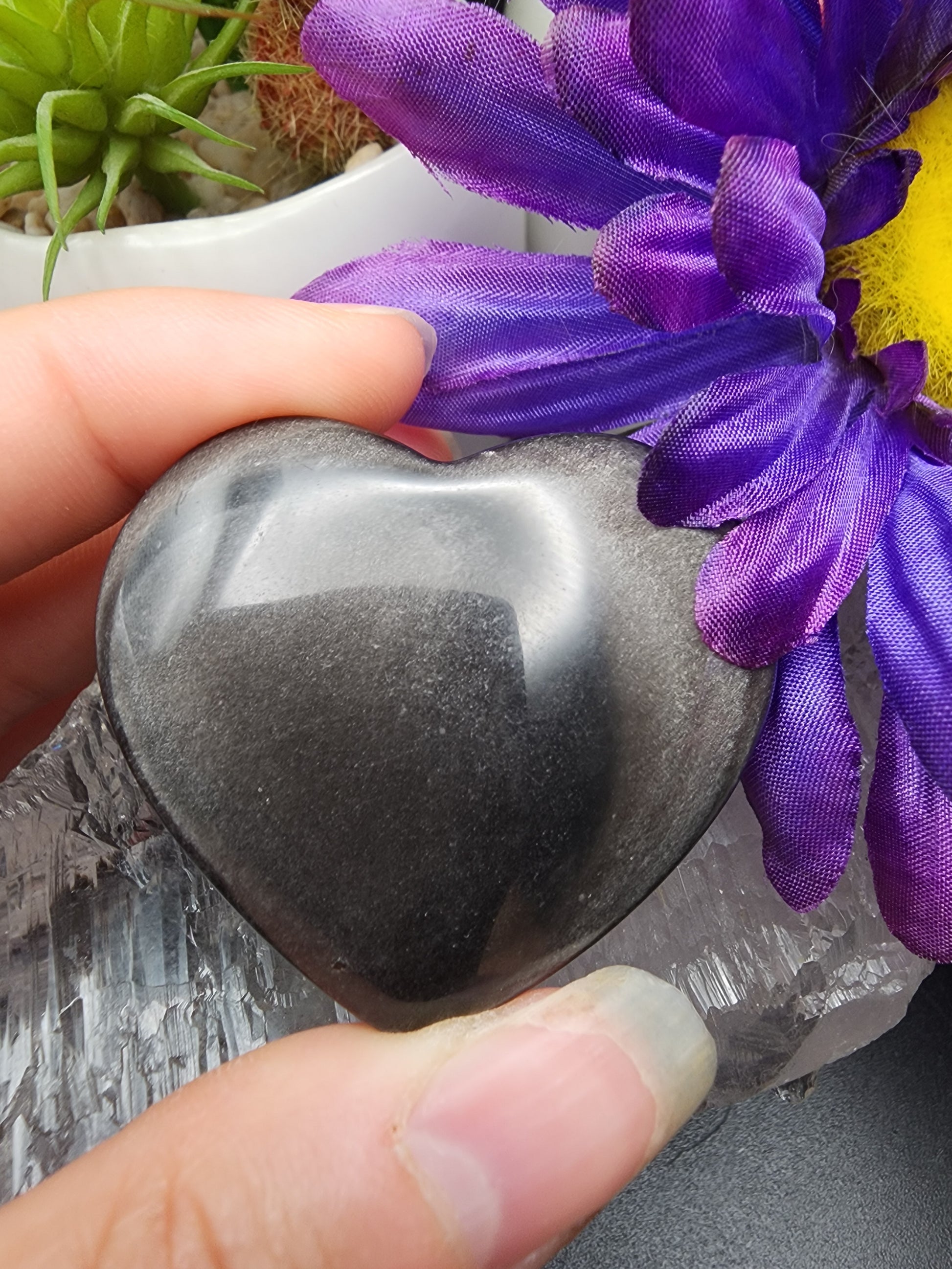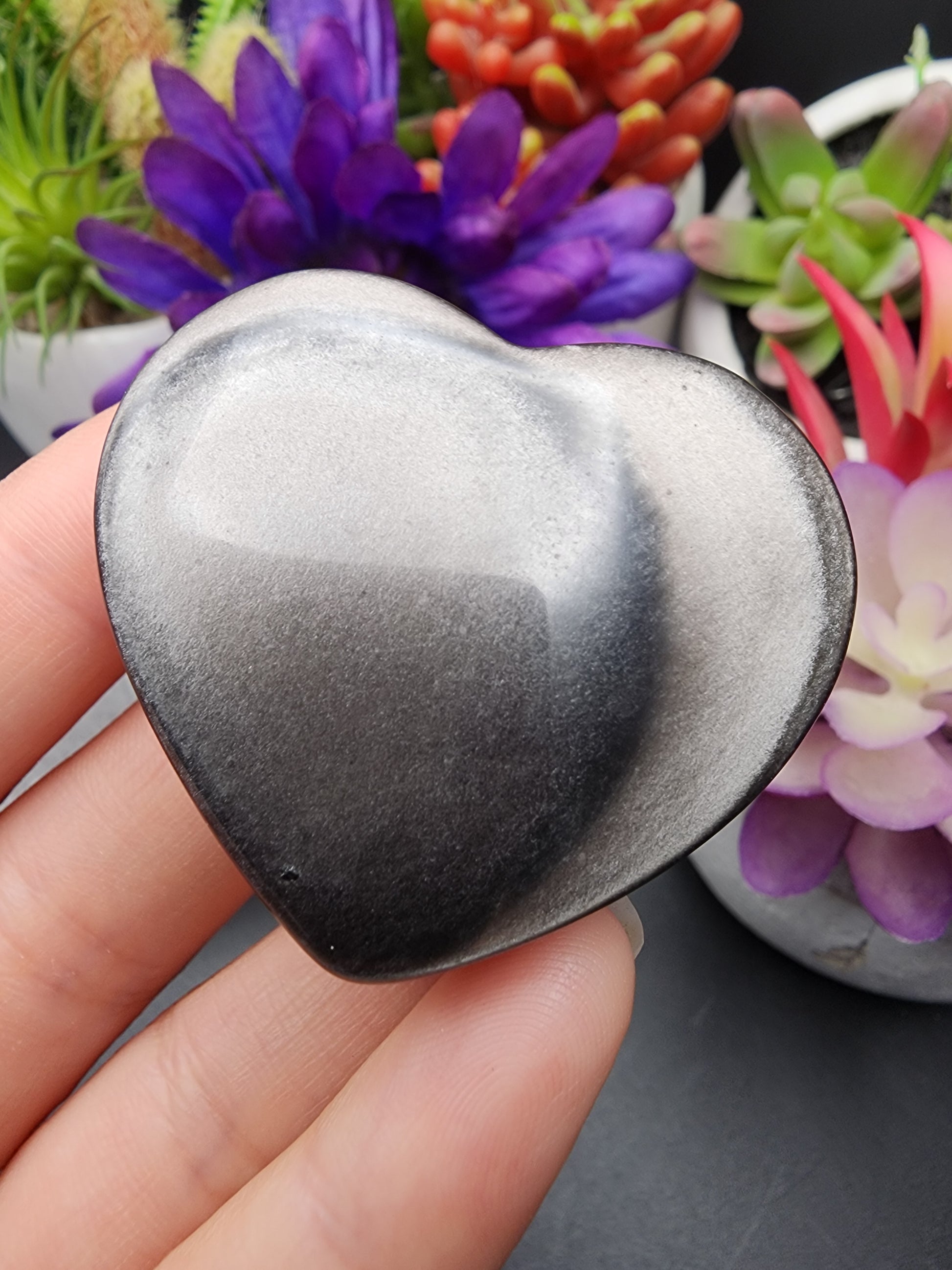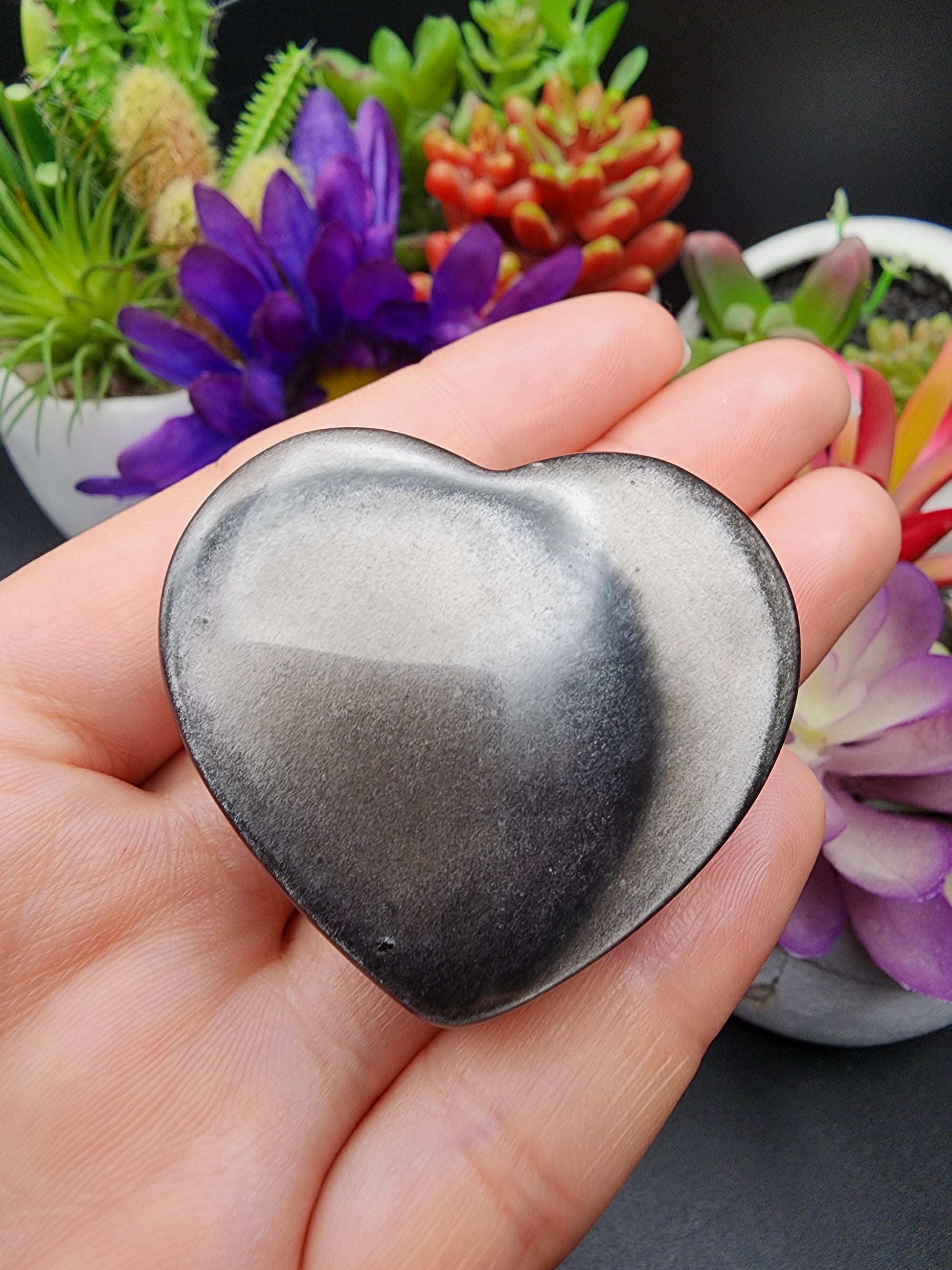 Polished Silver Sheen Obsidian Heart